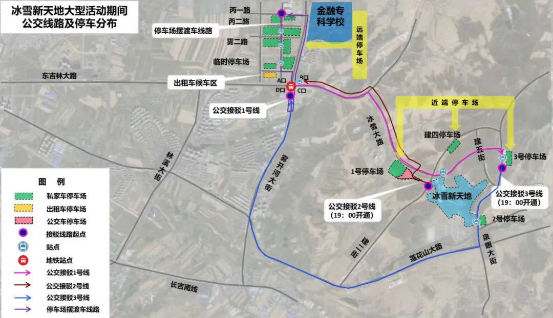 活动期间人流密集,为让您获得更加便捷的出行体验,建议优先选择公共交通前往。市民、游客可以乘坐长春轨道交通2号线在雾开河大街站(C口)下车,依照指引转乘公交666接驳线到达冰雪新天地主会场。