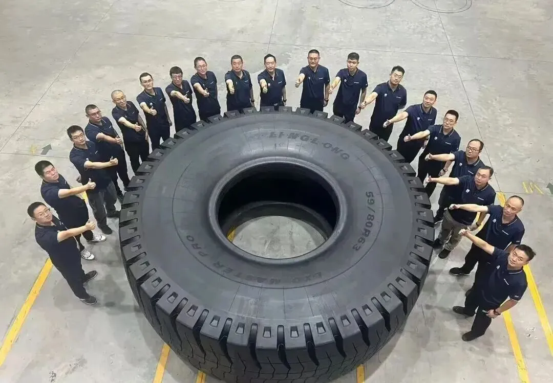 59/80R63的下线,标志着玲珑正式跻身全球少数能够生产63吋全钢巨胎的企业行列。该轮胎直径超过4米,单胎重量逾6吨,是目前全球尺寸最大的轮胎产品,主要配套于大型露天矿用自卸车,满足矿区复杂多变、高强度使用的严苛环境使用条件。
