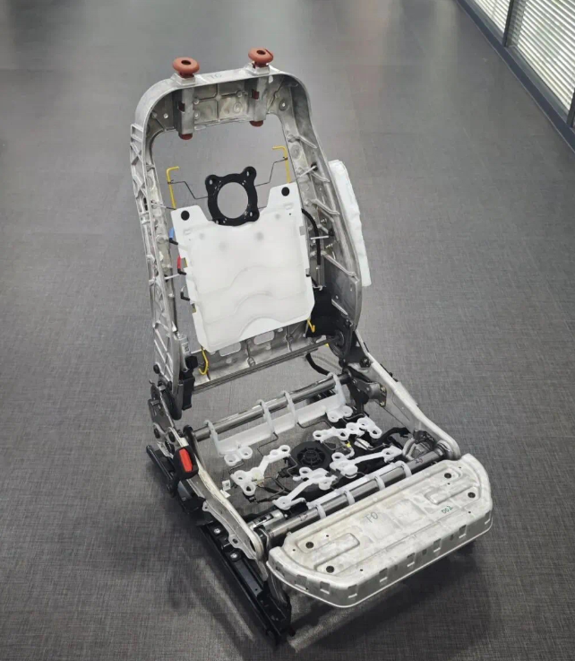 结构上,在保障座椅8向调节功能的前提下,将19个零件集成为4个镁合金零件,减少装配工序、提升效率。