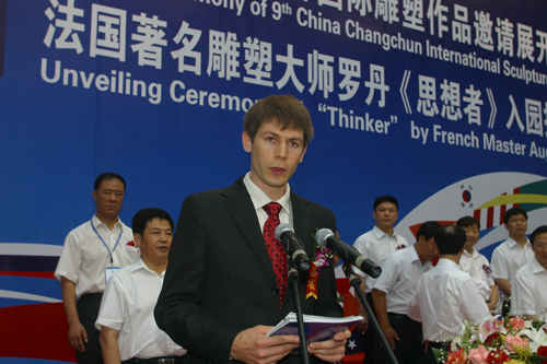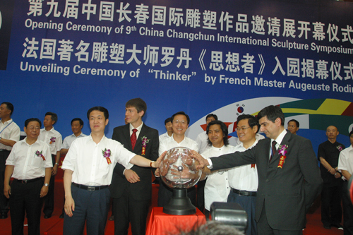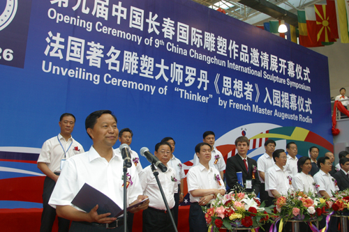 26日,第九届中国长春国际雕塑作品展开幕仪式暨法国雕塑大师罗丹《思想者》入园仪式在长春世界雕塑公园雕塑艺术馆中央大厅隆重开幕。