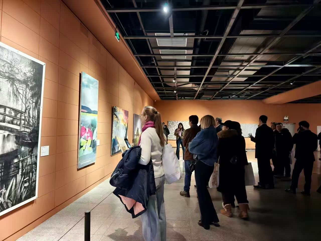 启动仪式后,全体与会嘉宾共同参观展览,近距离欣赏两国艺术家佳作,现场氛围热烈融洽。