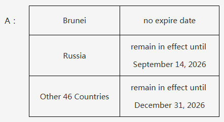 A: Nationals holding valid ordinary passports of 48 countries, namely Brunei, France, Germany, Italy, Spain, the Netherlands, Switzerland, Ireland, Hungary, Austria, Belgium, Luxembourg, New Zealand, Australia, Poland, Portugal, Greece, Cyprus, Slovenia, Slovakia, Norway, Finland, Denmark, Iceland, Andorra, Monaco, Liechtenstein, the Republic of Korea, Bulgaria, Romania, Croatia, Montenegro, North Macedonia, Malta, Estonia, Latvia, Japan, Brazil, Argentina, Chile, Peru, Uruguay,Saudi Arabia, Oman, Kuwait, Bahrain, Russia and Sweden are exempted from visa requirement if coming to China for the purpose of business, tourism, family or friends visits, exchange and transit. They can stay in China for no more than 30 days without a visa.
